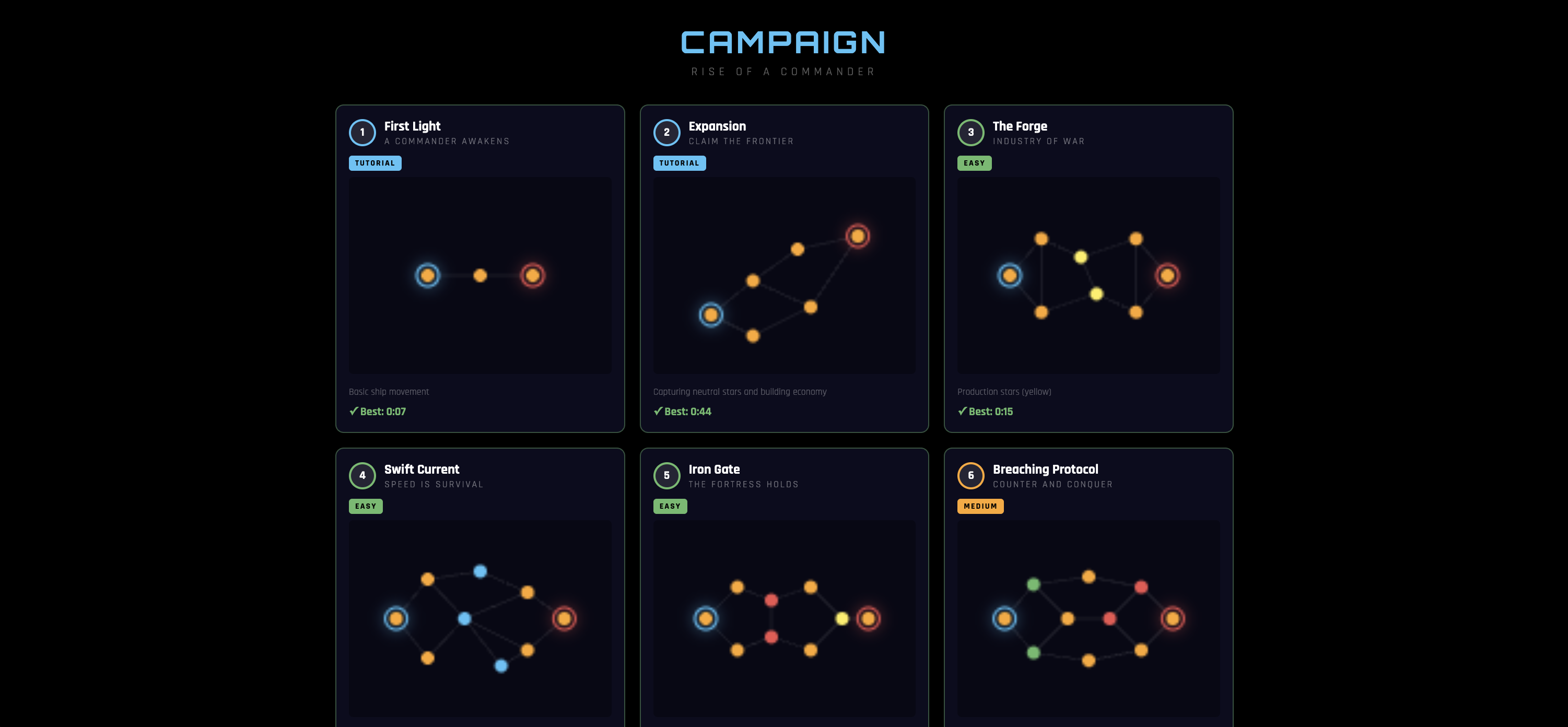 PaxNeo is a fast-paced real-time strategy game inspired by Pax Galaxia. Capture stars, grow your fleet, and overwhelm your opponents in quick 2-5 minute matches.